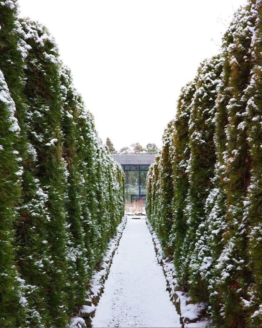 11월 초부터 3월 초까지 이어지는 개화 시기에는 '납매'가 향긋하게 피어나고, 그 뒤를 이어 붉은 동백꽃이 밀러가든 산책로를 수놓습니다. 눈이 내린 날, 하얀 눈 속에 피어난 붉은 동백꽃은 정말 환상적입니다. 우리 아이들은 크리스마스 장식 같다며 '호랑가시나무'의 빨간 열매를 정말 좋아했어요. 진녹색 잎 사이로 빛나는 붉은 열매는 아이들의 호기심을 자극하기에 충분합니다.
