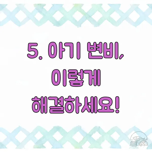 - 변비약 사용 (의사 처방 필수): 아기 변비가 심한 경우, 의사의 처방에 따라 변비약을 사용할 수 있습니다. 절대 임의로 변비약을 사용하지 마세요!