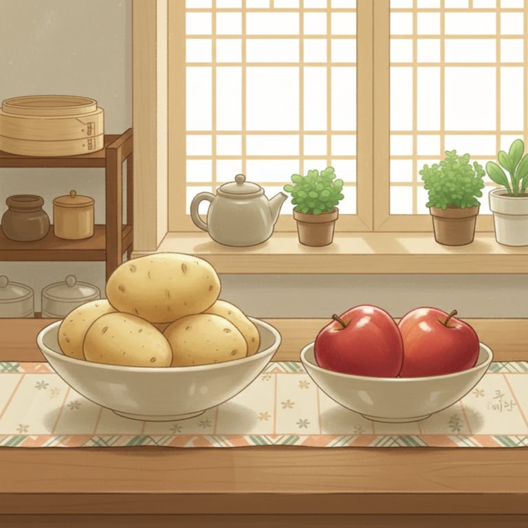 - '이것'과 함께 보관하면 효과 2배!: 바로 사과 예요! 사과에서 나오는 '에틸렌 가스'가 감자의 싹을 틔우는 것을 억제하는 효과가 있다고 해요. 2026년 최신 연구 결과에도 꾸준히 언급되는 꿀팁이죠! 감자 상자에 사과 한두 개를 쏙 넣어두면 보관 기간이 훨씬 길어진답니다. 정말 신기하죠?!
