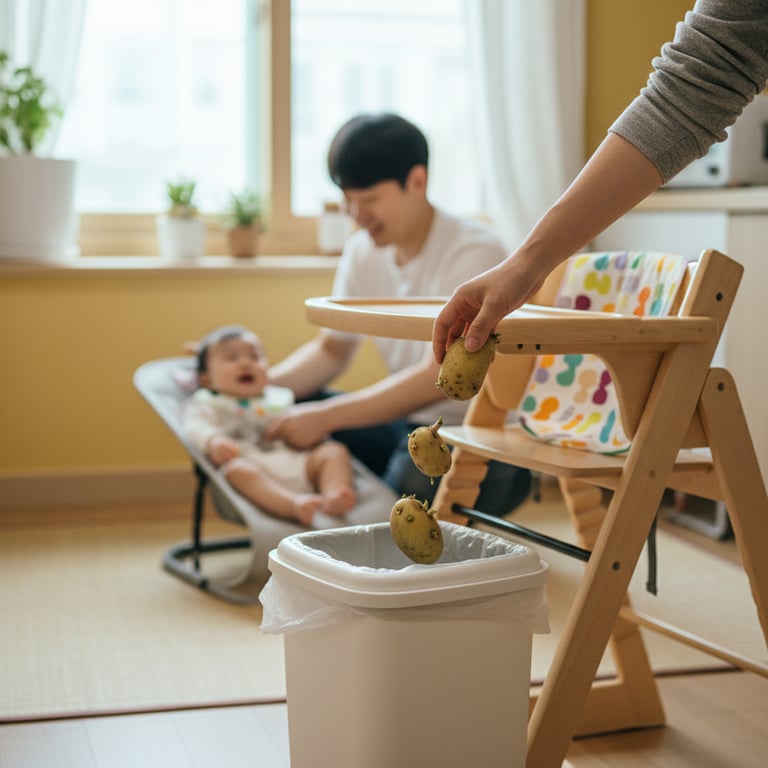 특히 첫째 이유식 만들던 시절을 떠올리면 지금도 아찔한 순간들이 많아요. 얼마 전에도 8개월 된 조카 이유식을 봐주는데, 감자를 꺼내니 작은 싹이 빼꼼~ 올라와 있더라고요. 순간 고민에 빠졌죠. '에이, 요만큼인데... 싹만 깊게 도려내고 삶으면 괜찮지 않을까?' 하는 아까운 마음, 우리 엄마 아빠들이라면 다들 공감하시죠?!