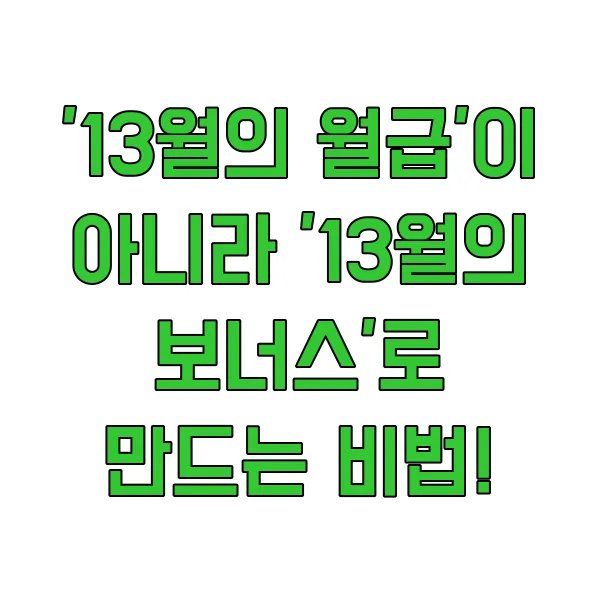'13월의 월급'이 아니라 '13월의 보너스'로 만드는 비법!