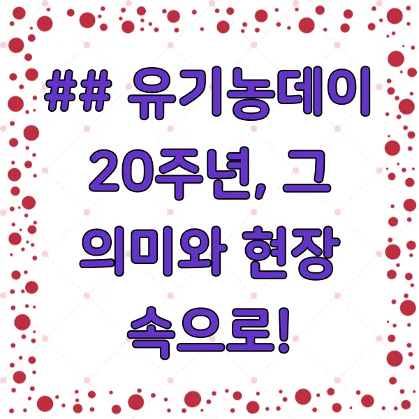 여러분, 안녕하세요! 😊 오늘은 정말 마음까지 따뜻해지는 특별한 소식을 가지고 왔어요. 바로 올해로 20주년을 맞이한 '유기농데이'와 함께, 6월 한 달 동안 열리는 친환경 농산물 특별판매전 이야기랍니다! 와아아~~! 생각만 해도 건강해지는 기분이죠?
