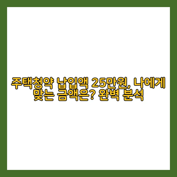 - 국민주택 🎯, 안정 추구형: 국민주택(공공분양)을 노린다면 월 25만원 납입을 적극 추천합니다. 국민주택은 분양가가 상대적으로 저렴하고, 당첨에 '저축 총액'이 중요한 역할을 하기 때문입니다. 꾸준한 납입으로 당첨 확률을 높여보세요!