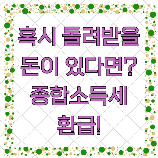 열심히 신고하고 납부했는데, 혹시 내가 낸 세금이 원래 내야 할 세금보다 많을 수도 있잖아요? 그럴 때는 당연히 돌려받아야죠! 이게 바로 '종합소득세 환급'이랍니다.